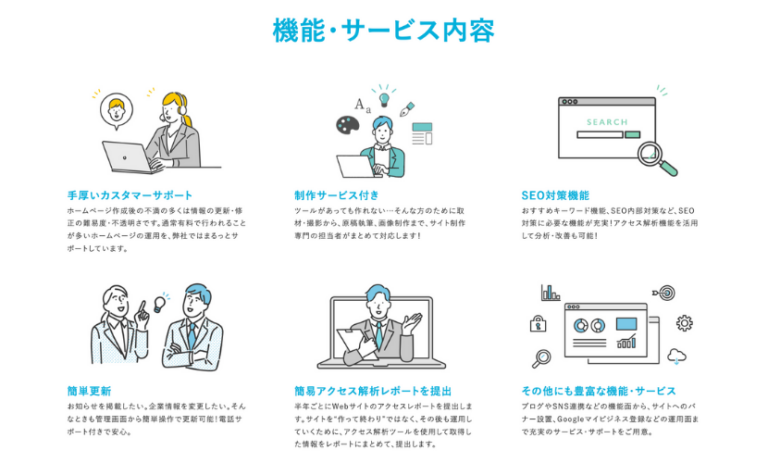 Website creation is available at a reasonable price, and with extensive customer support after the website is published, even those who are not good at using the internet or computers can use it with confidence.